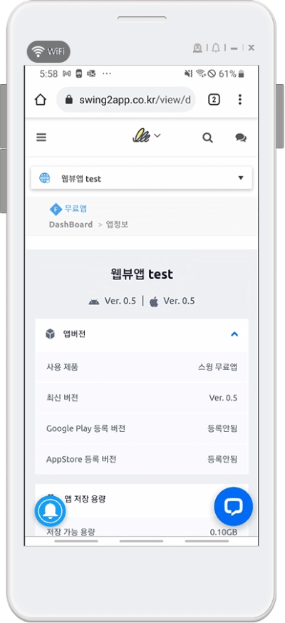 모바일(안드로이드폰)에서 [스윙투앱 홈페이지]에 접속합니다.