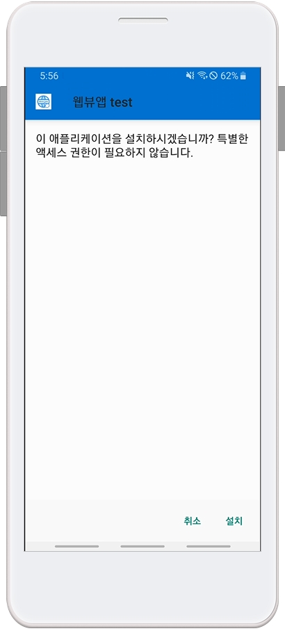 앱 설치가 시작됩니다. 설치 버튼 탭해주세요.