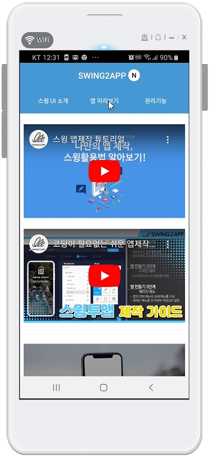 -스윙투앱 프로토타입- 푸시, 웹뷰로 제작한 앱은 앱미리보기가 불가능합니다.(앱 다운로드만 가능)