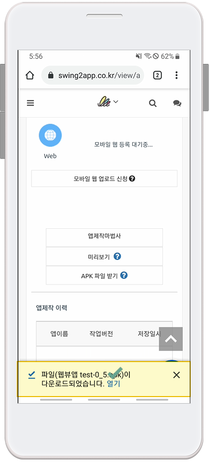 스윙투앱에서 제작한 APK파일(앱)을 핸드폰으로 설치(다운)하는 방법 매뉴얼
