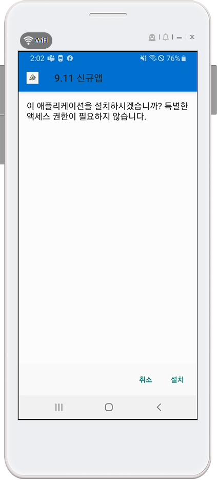 안드로이드폰에는 기본적으로 외부에서 받아온 파일을 설치할 경우 보안 메시지가 뜹니다.