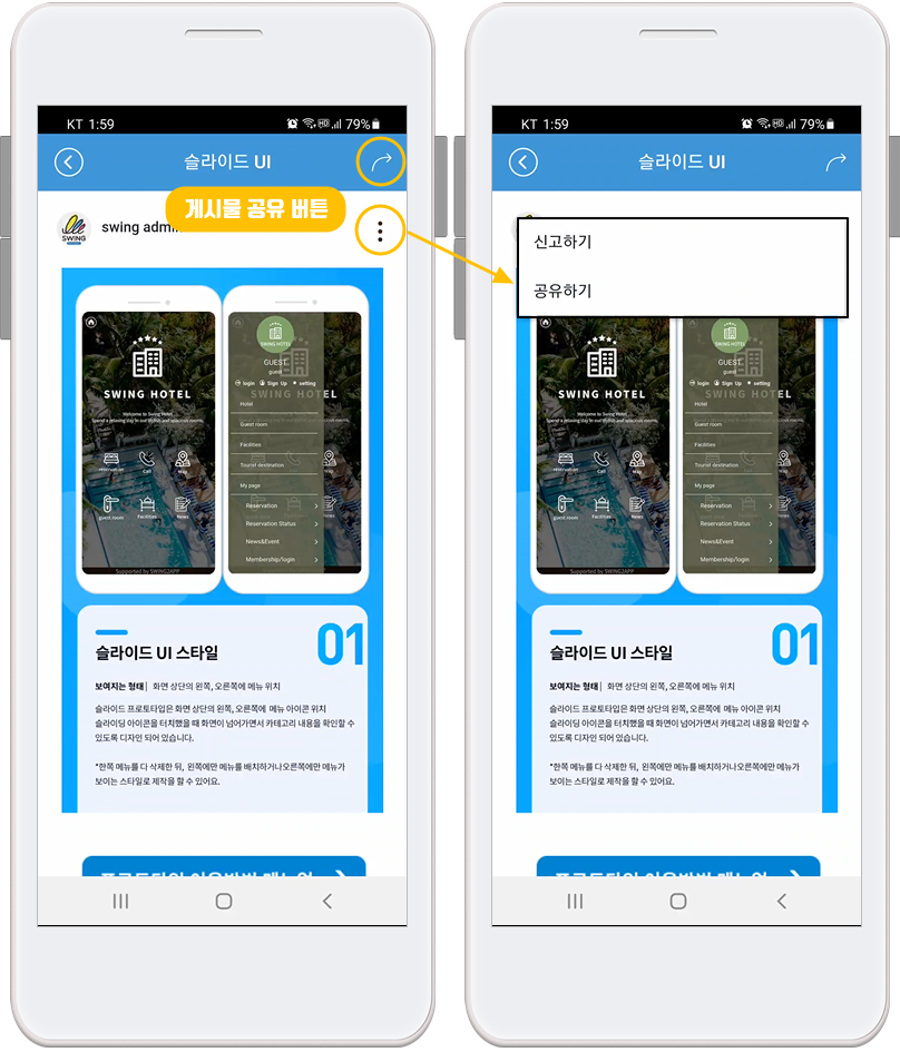 앱 – 게시판 및 게시물 공유 안내사항