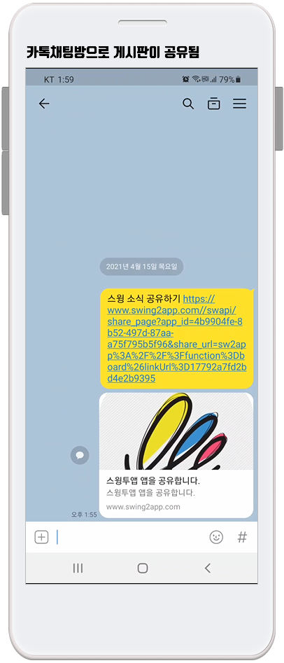카톡 채팅방으로 게시물이 공유되구요.
