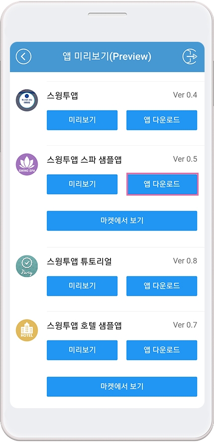 4)스윙투앱 공식앱 – 앱미리보기에서 – 앱 다운로드 진행