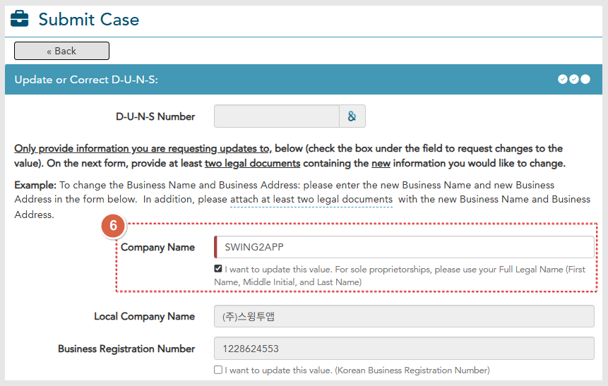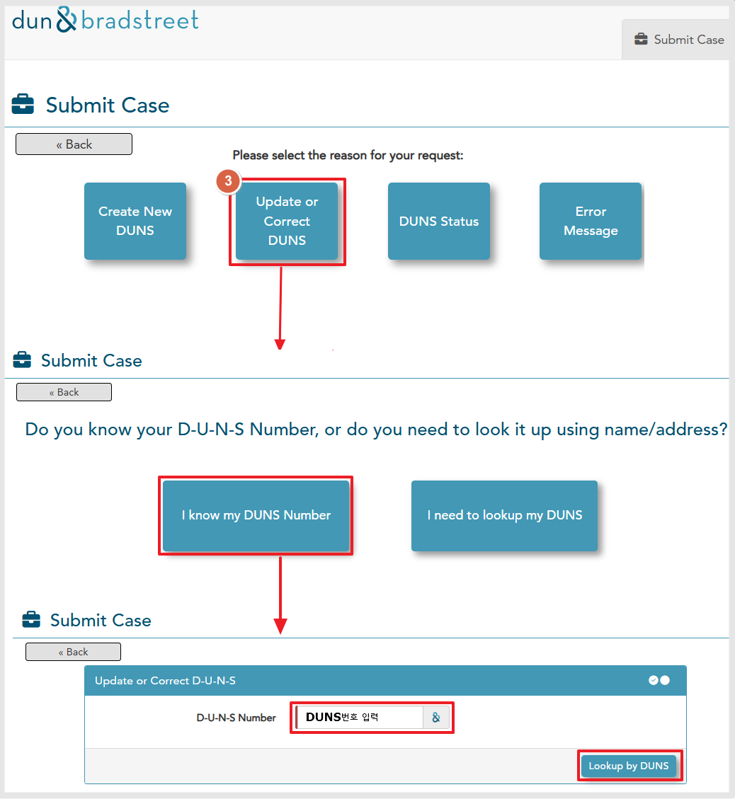3\) "Update or Correct DUNS" 선택