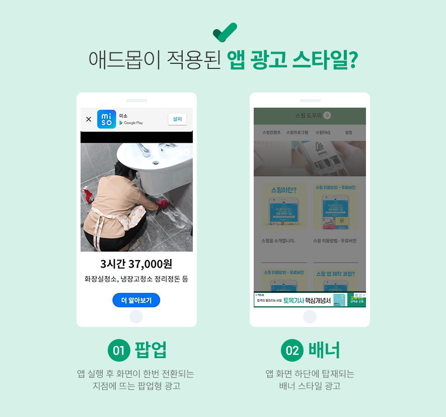 웹뷰 혹은 푸시앱에서도 전면 및 배너 광고를 띄울 수 있습니다.