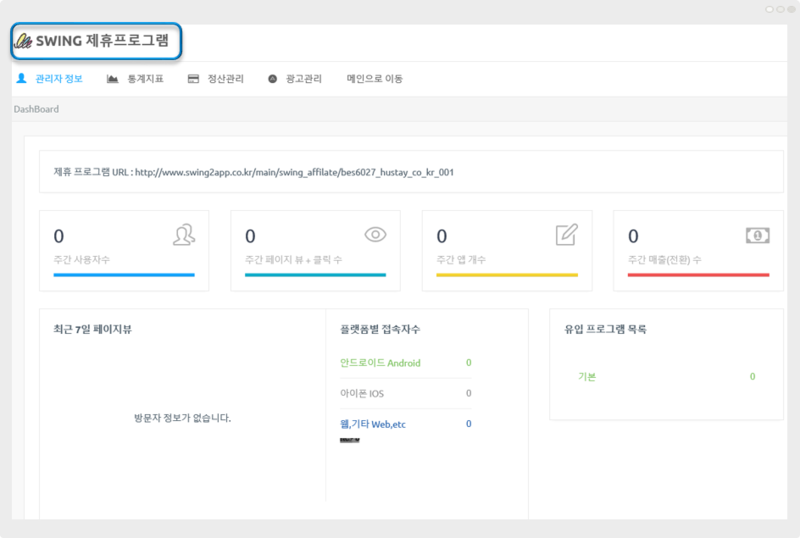 제휴 프로그램 유입사용자로 집계가 되는 사용자는 스윙에 처음 가입한 신규회원들만 해당됩니다.