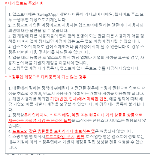 앱스토어는 스윙투앱 계정으로 대리 등록이 가능한가요?