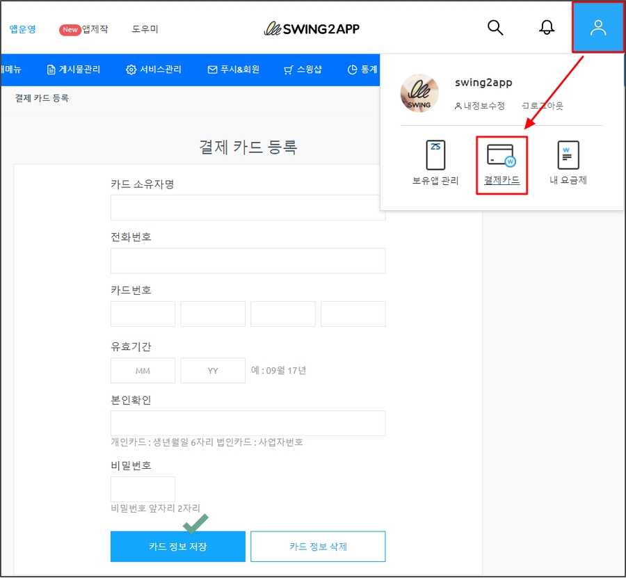 스윙투앱 앱운영-결제/이용권 구매-쿠폰사용하기 페이지로 이동합니다.