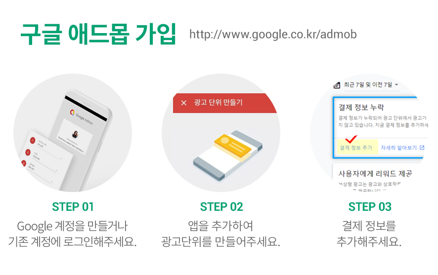 = 결제 정보 입력 없이 신청할 경우 애드몹 광고 게시가 그만큼 늦어집니다.