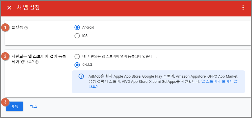 스토어에 등록되지 않은 앱으로 진행해도 되지만, 출시 후 애드몹에서 스토어 추가 작업을 해야 하며 그만큼 앱 광고 노출이 늦어집니다.