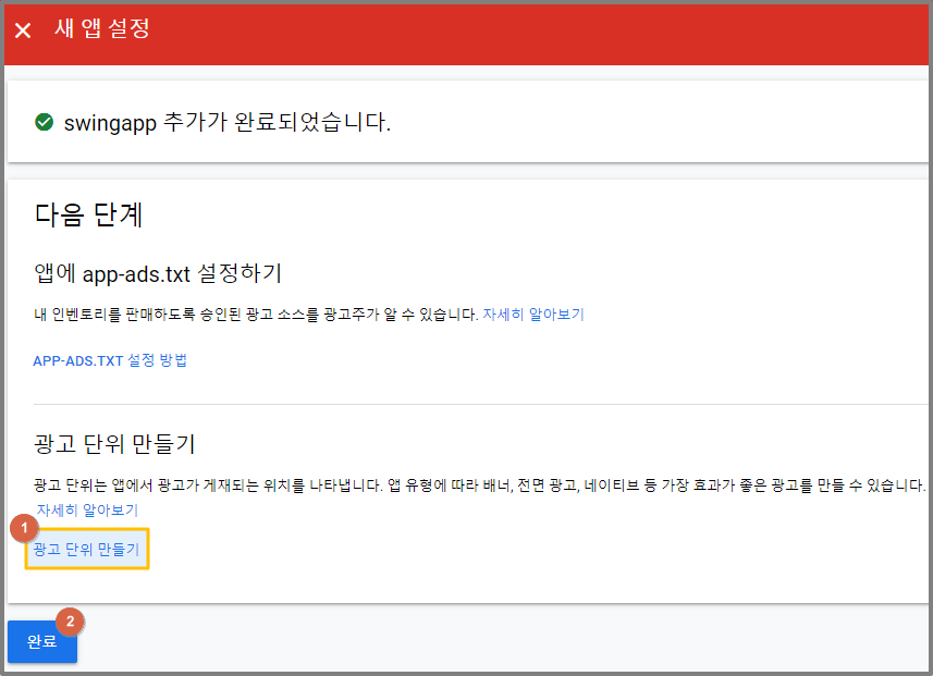 STEP4. 앱 광고 단위 아이디 만들기 – 배너, 전면