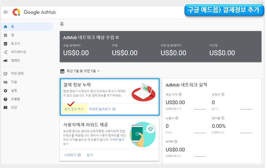 따라서 첫 가입을 하신 분들은 반드시! *애드몹 대시보드에서 결제프로필을 입력했는지 확인해주시기 바랍니다.