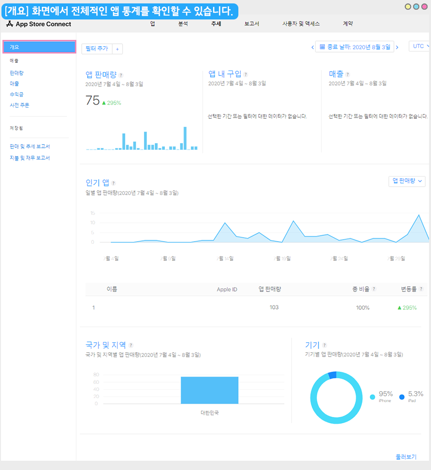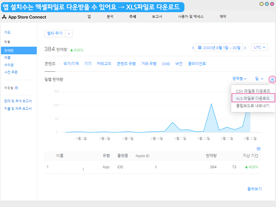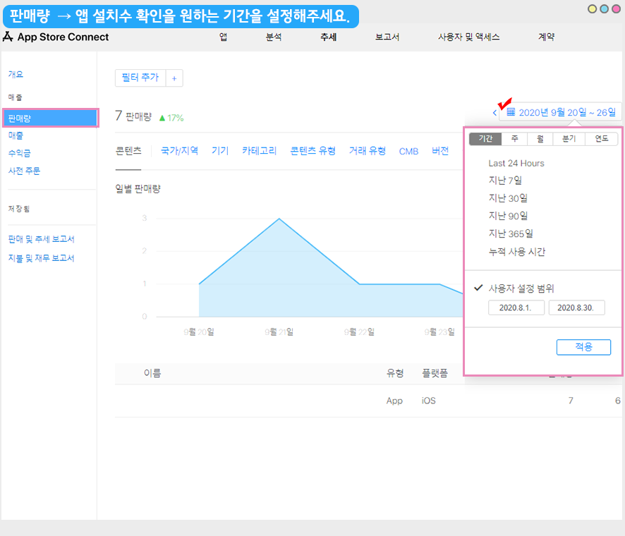 해당 매뉴얼을 통해서 애플-앱스토어에서 앱 설치수를 확인하는 방법을 알려드리겠습니다.