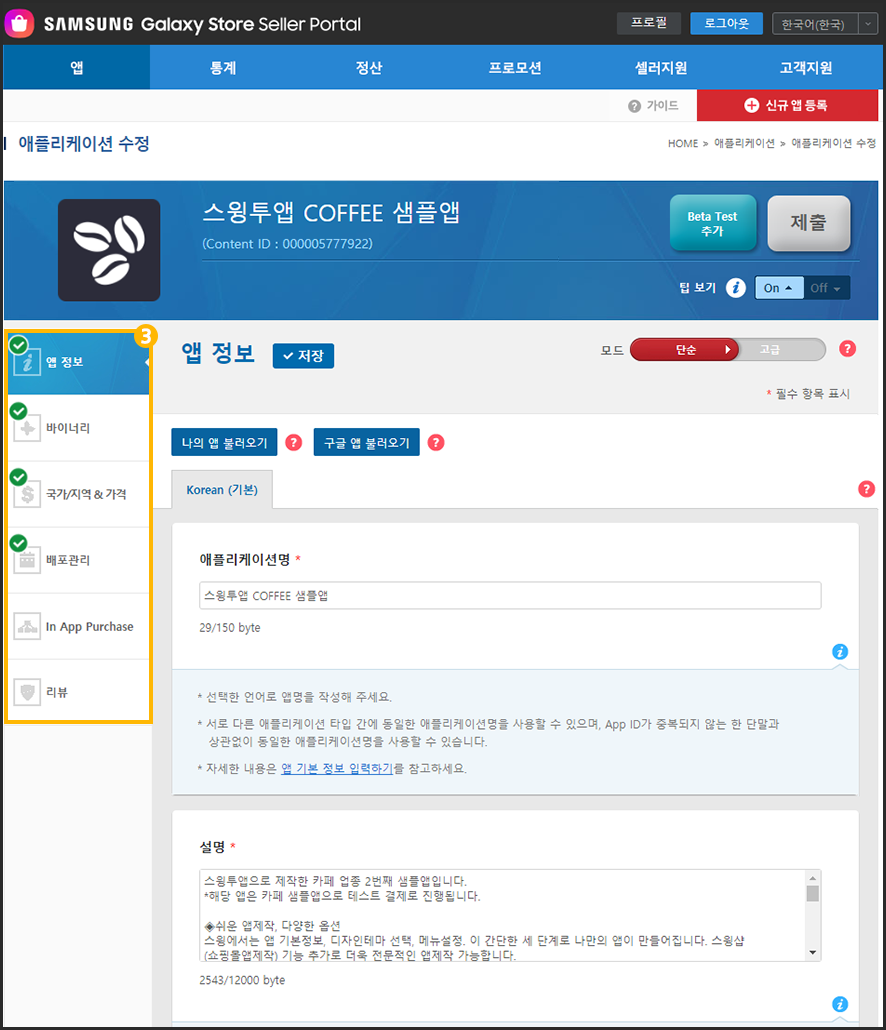 리뷰 중인 애플리케이션의 정보를 수정하려면 아래와 같이 작업을 진행하셔야 합니다.