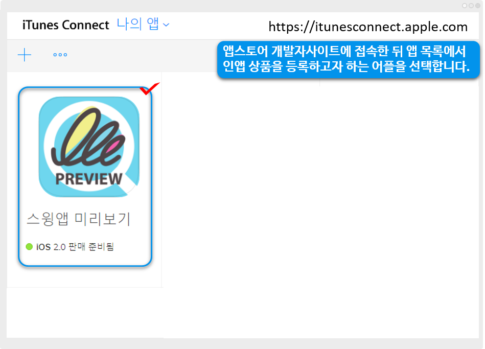 앱 목록에서 인앱 상품을 등록하고자 하는 어플을 선택해주세요.