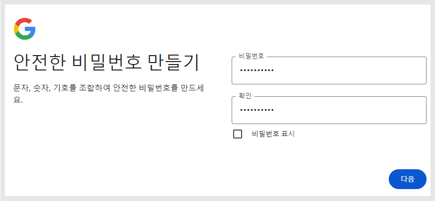 ## 구글 계정 만들기 <a href="#id-1" id="id-1"></a>