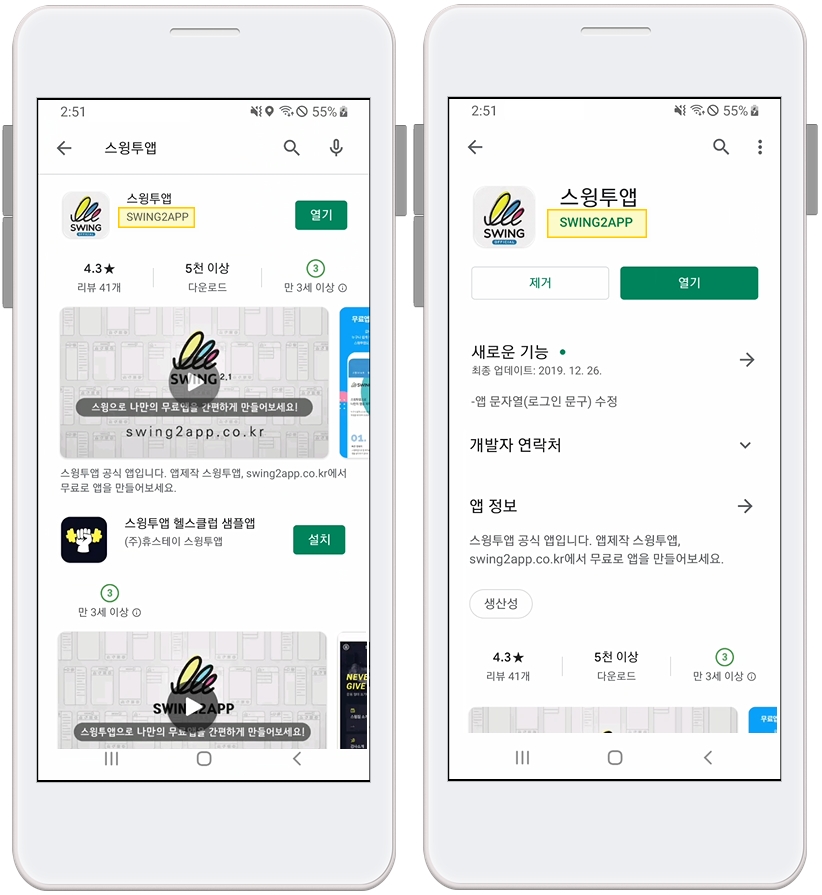 -스윙투앱 계정으로 대리등록한 사용자분들 역시 개발자명은 변경할 수 없습니다.