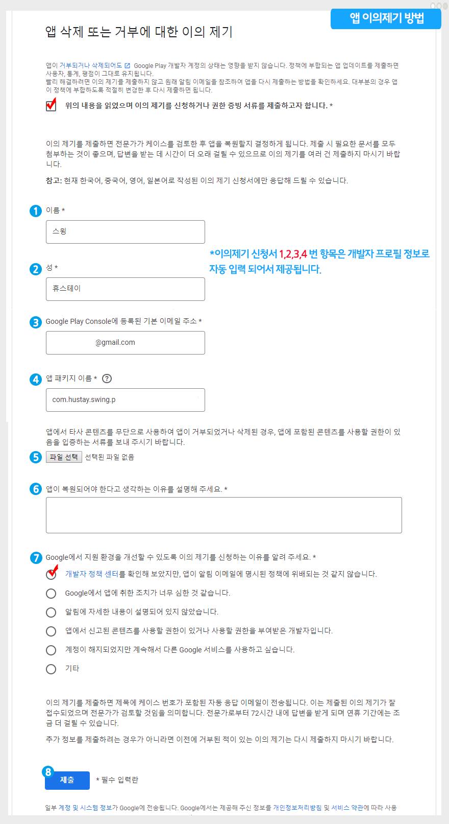 이때!! 메일에 기재된 정책을 확인했지만 앱이 정책을 위반하고 있지 않다면!
