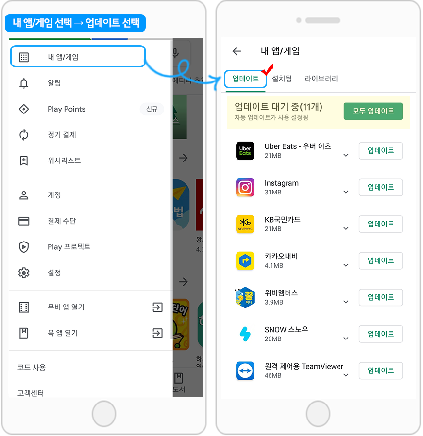 플레이스토어 출시된 앱 업데이트 받는 방법