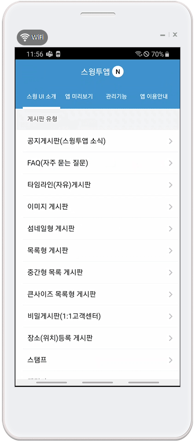 스윙투앱에서 샘플로 기본 제공해드리는 게시판이에요.