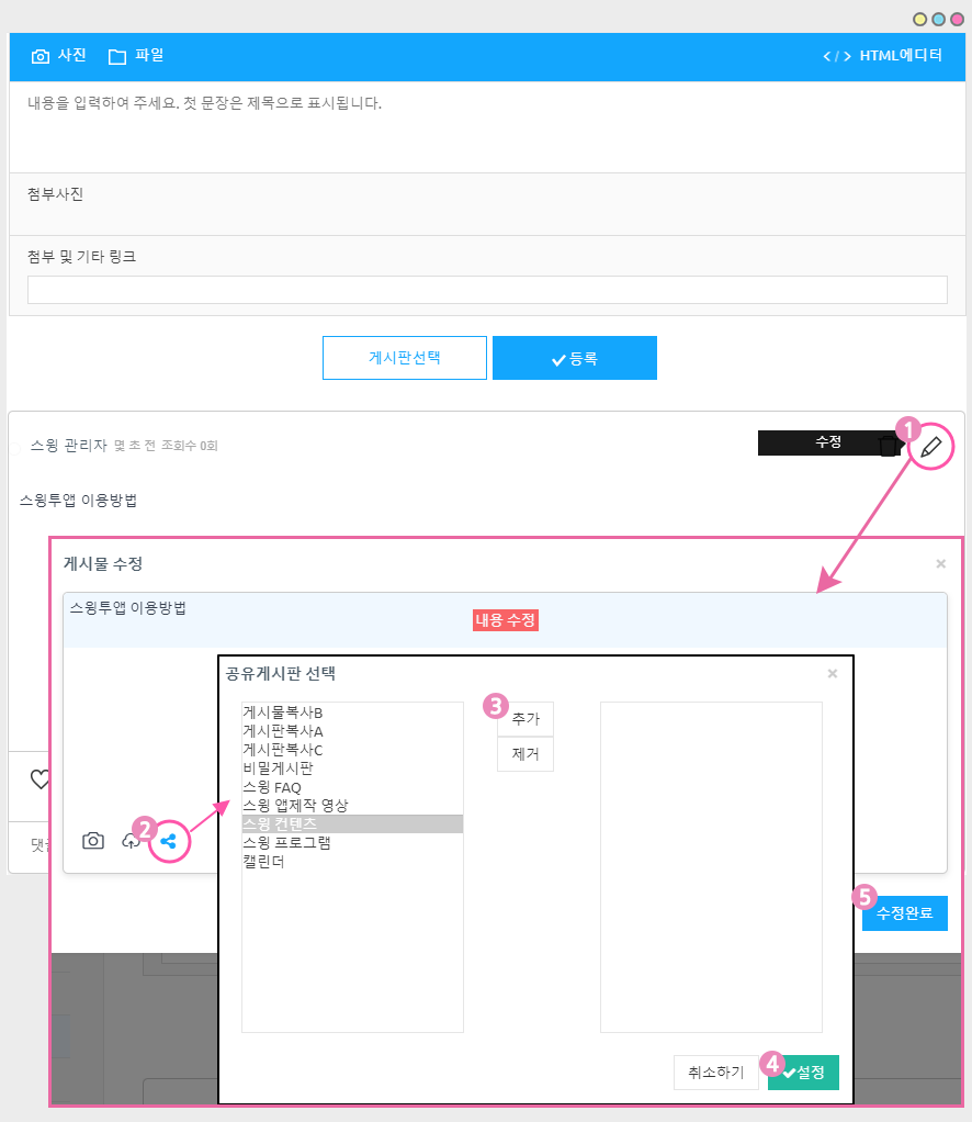 4. 게시물 수정- 공유 게시판 추가 등록 가능