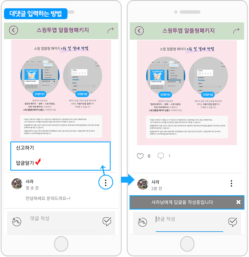 STEP4. 앱 실행화면) 대댓글 입력방법