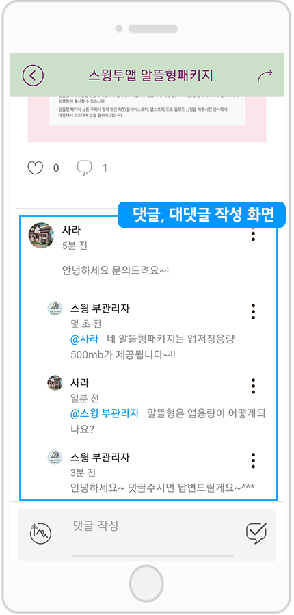 따라서 댓글- 대댓글을 자유롭게 주고 받을 수 있구요.