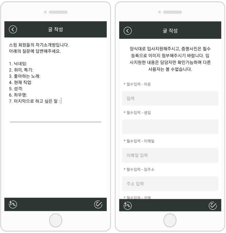 *즉 글만 작성할 수 있고, 작성된 글 목록은 앱운영페이지에서 관리자만 확인이 가능합니다.