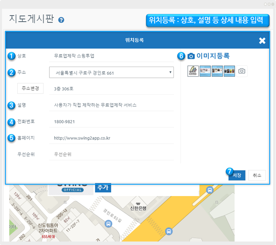 6)이미지등록: 이미지 등록이 가능합니다. 업체 내부 사진 및 업체 홍보용 사진이 있다면 등록해주세요.