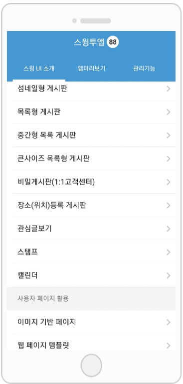 *UI KIT 화면에 있는 [새로 만들기] 버튼을 선택하거나, 앱운영-서비스관리- 게시판관리에서도 게시판을 만들 수 있습니다.