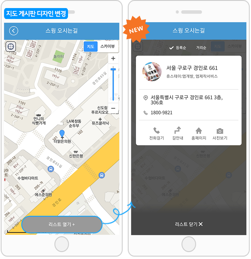 7)새 버전으로 제작된 앱으로 업데이트 후 확인시, 변경된 항목 확인이 가능합니다.