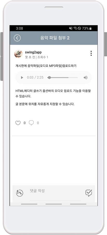 게시판에 오디오(음악)파일을 첨부하는 방법 매뉴얼