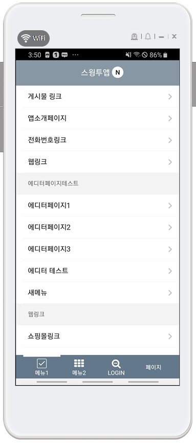 스윙 앱제작 페이지에서 → 페이지 메뉴 로 이동합니다.