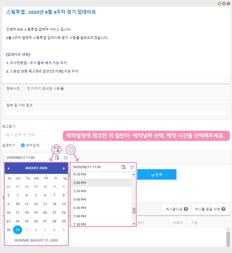 게시판 - 게시물 예약 설정