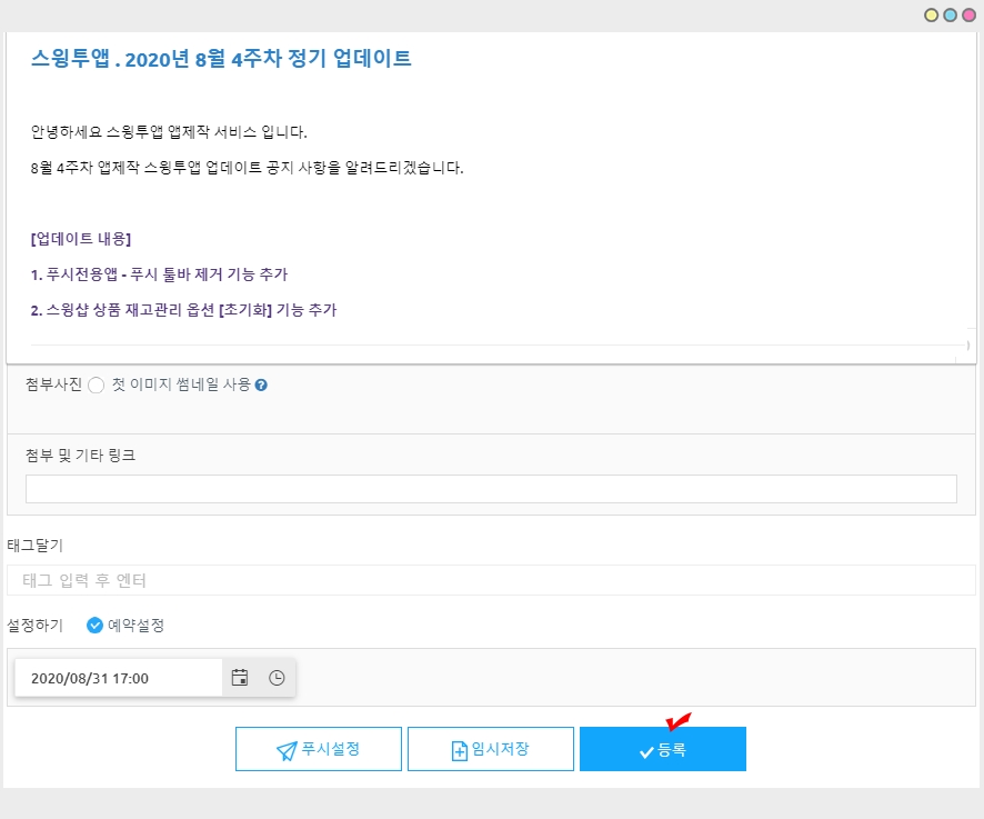 4) [등록] 버튼을 눌러주면 완료됩니다.