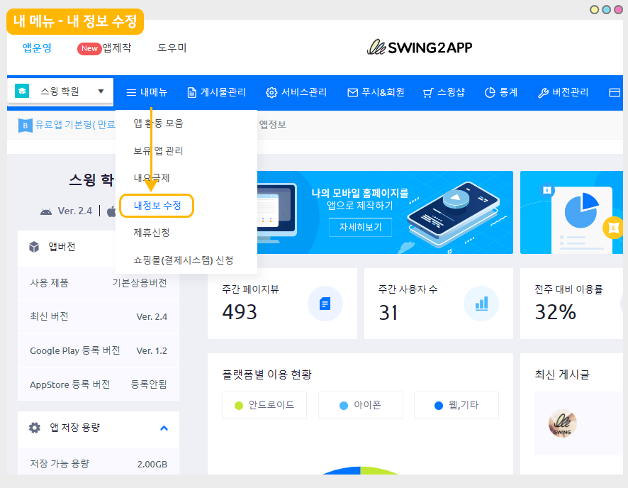 앱운영 – 내 메뉴 – 내 정보 수정 이동하여 확인 가능합니다.