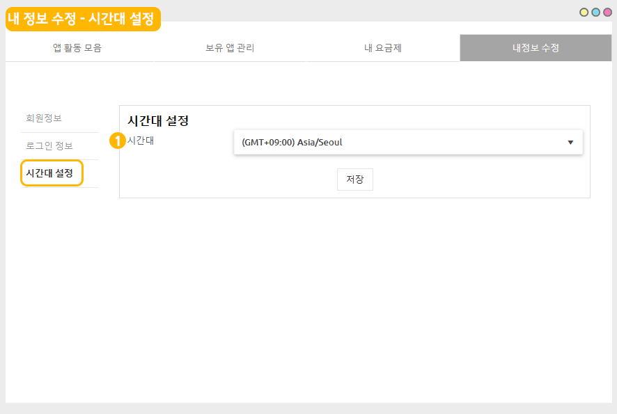### **2. 내 정보 수정 – 회원정보, 로그인 정보, 시간대 설정**