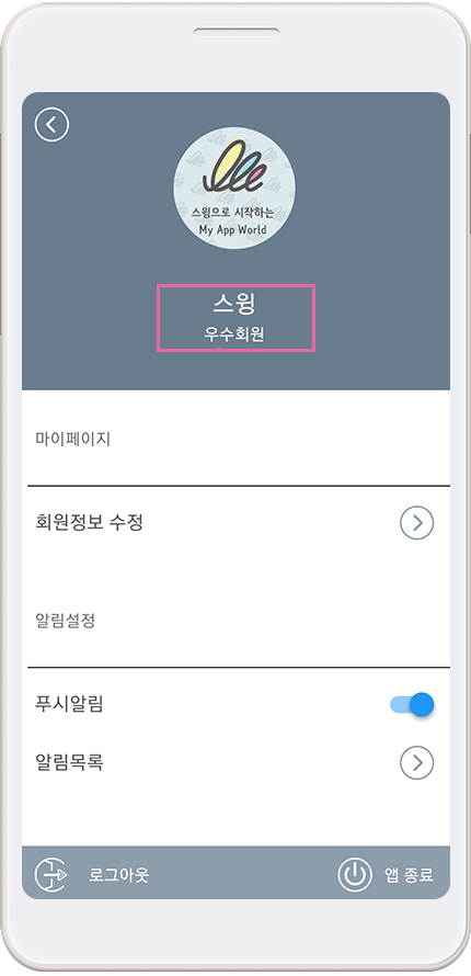 *앱에서는 사용자 등급(그룹)이 어떻게 변경되는지 확인해볼게요!
