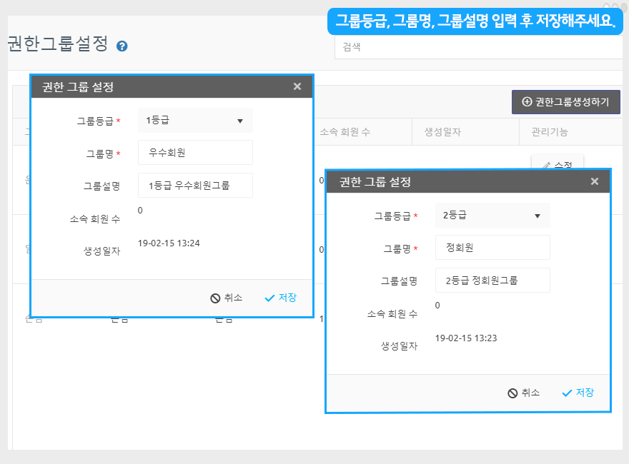 권한 그룹을 생성하여 회원에게 등급을 적용하는 방법