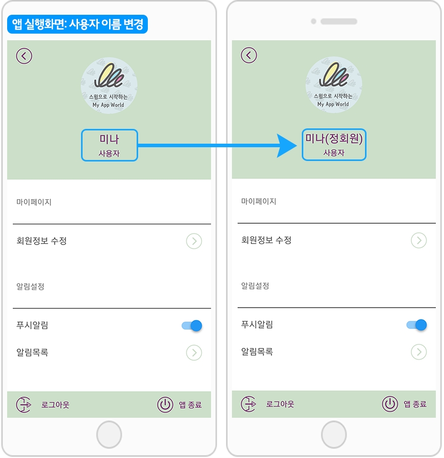 *사용자는 앱 설정 – [회원정보 수정]에서 이름을 변경할 수 있습니다.