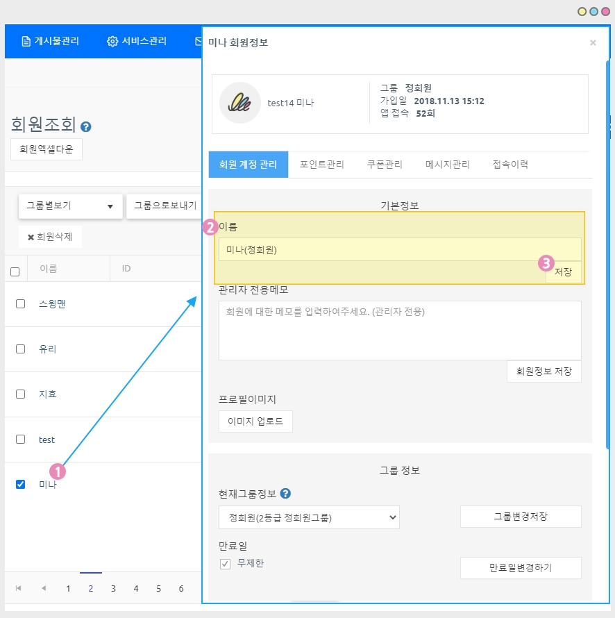 관리자 권한으로 앱 가입자 회원 이름을 변경하는 방법 안내