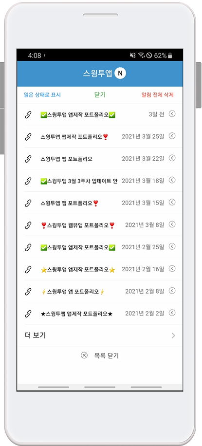알림창에서 이전에 확인하지 못한 푸시 메시지를 다시 볼 수 있구요.