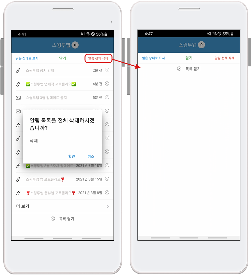 푸시 알림 전체 삭제, 읽은 상태로 변경, 개별 삭제 이용방법