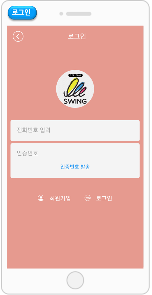 전화번호 아이디로 설정한 경우 앱 실행시 회원가입 창에서 전화번호 입력 후 인증번호를 발송하게 되어 있습니다.