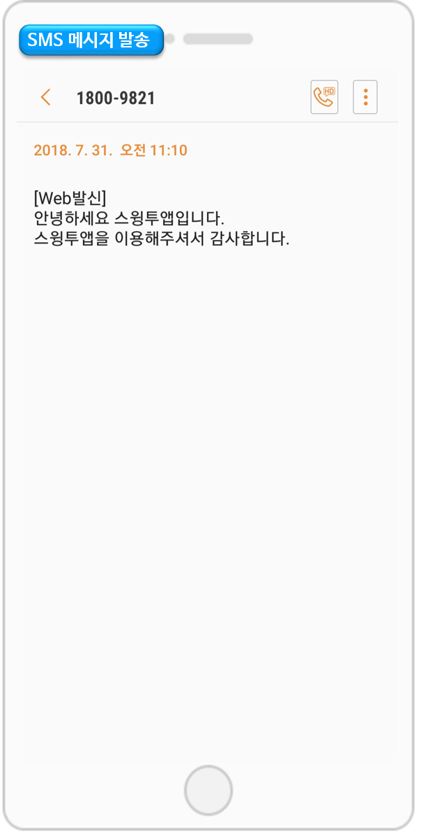 수신자의 핸드폰으로 문자 메시지가 발송이 되었습니다.