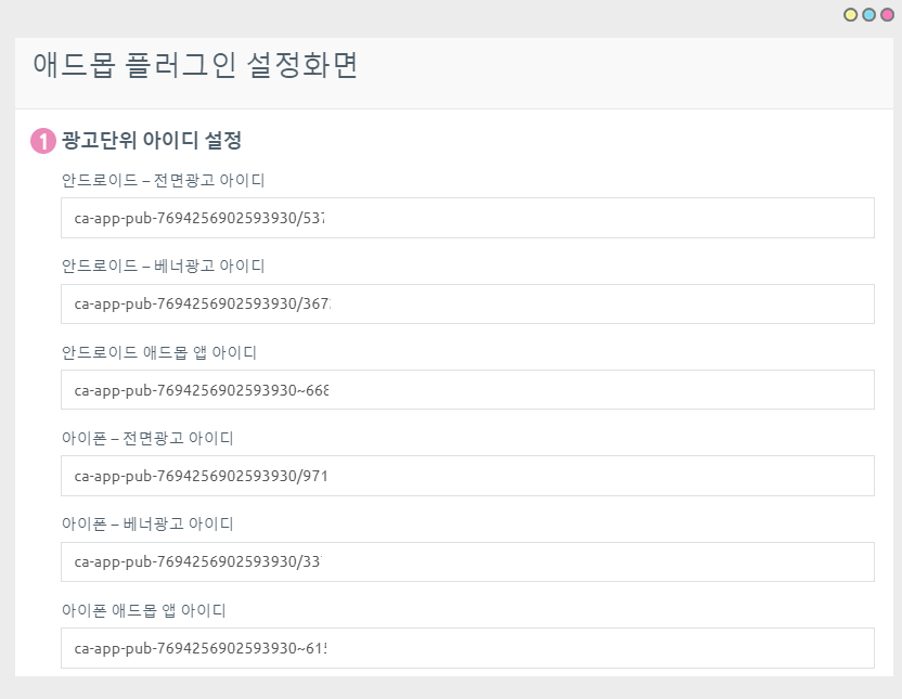 이후에는 수정하고 저장만 하면 됩니다. 앱 종료 후 재실행하면 변경된 광고 설정으로 반영됩니다.