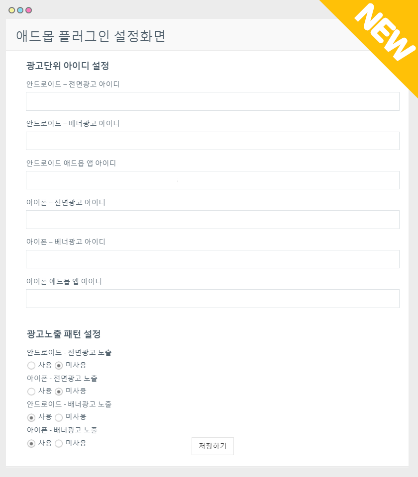 애드몹 적용 플러그인 상품 구매 후, 애드몹 광고를 사용자의 앱 내에 직접 셋팅할 수 있는 기능이에요.