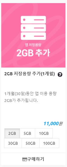 (기본형 유료앱은 용량이 2GB로 제공됩니다)