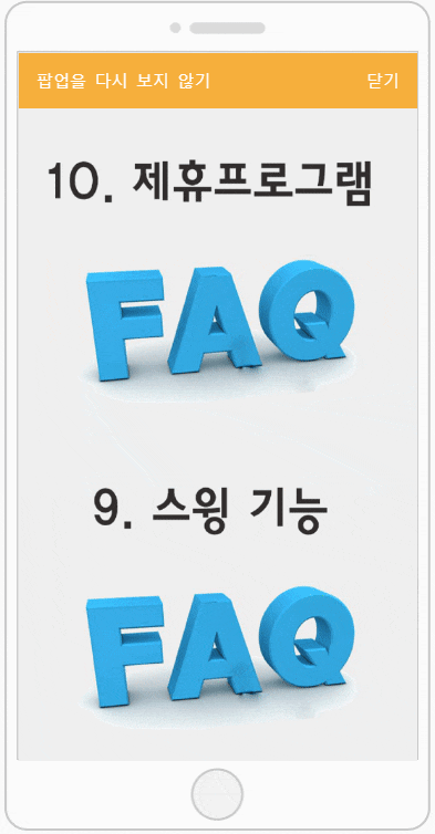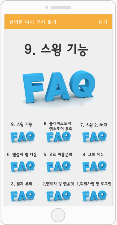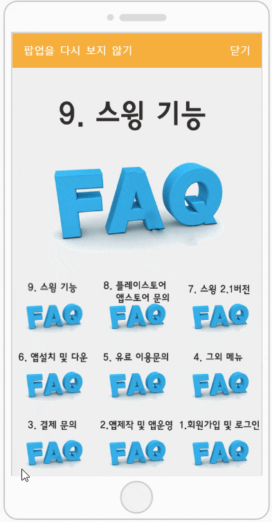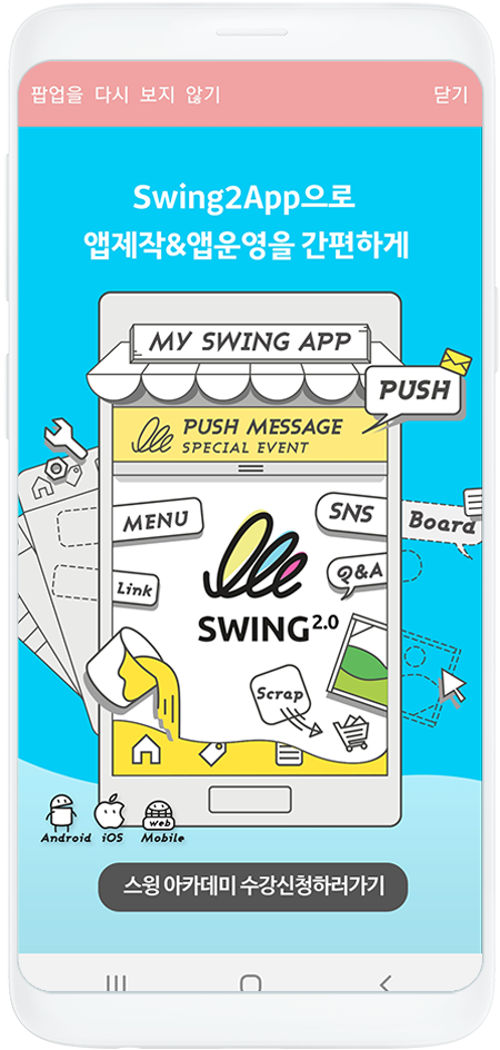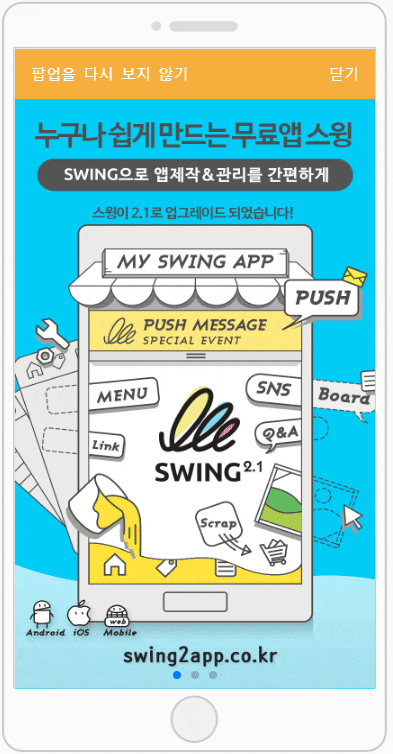 스윙투앱에서 제공하는 팝업 메뉴는 모든 사용자들이 무료로 만들 수 있습니다.